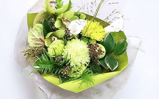 - 【白+グリーン系】 お供え用 生花 (仏花) アレンジ Lサイズ 生け花 花 フラワー お供え 仏壇 日用品 雑貨 九州 熊本県 熊本市 常温 冷蔵