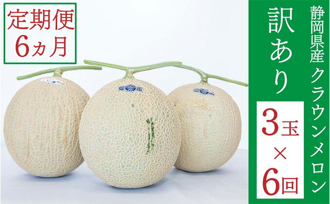 【ふるさと納税】クラウンメロン 訳あり 3玉 定期便6ヶ月 メロン 人気 厳選 ギフト 贈り物 デザート グルメ 袋井市 果物 メロン青肉 フルーツ 静岡県産 マスクメロン 最高峰 上品 甘み とろける 柔らか 食感 高級メロンブランド