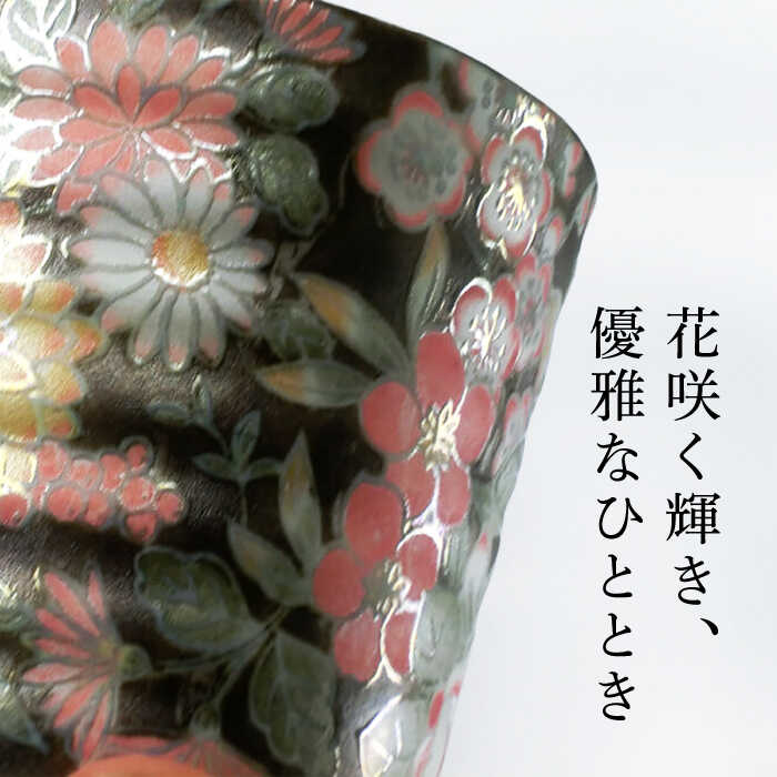 - 【ふるさと納税】【美濃焼】光友禅 カップ ブラック【山勝美濃陶苑】カップ 花 和柄(HYC-3053B)[MEC046]