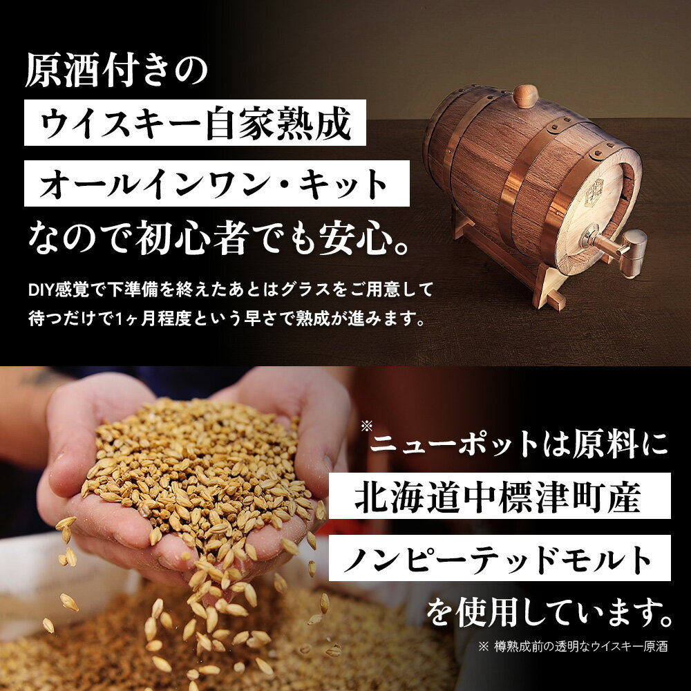 - 【ふるさと納税】★TWSC2025金賞受賞★ ウイスキー自家熟成キット with 中標津モルト・ニューポット原酒 | 熟成樽 3L ノンピーテッドモルト ニューポット モルト ウイスキー 原酒 ミニ樽 キット 熟成 酒 ギフト 馬追蒸溜所 北海道 中標津町 中標津【5400401】