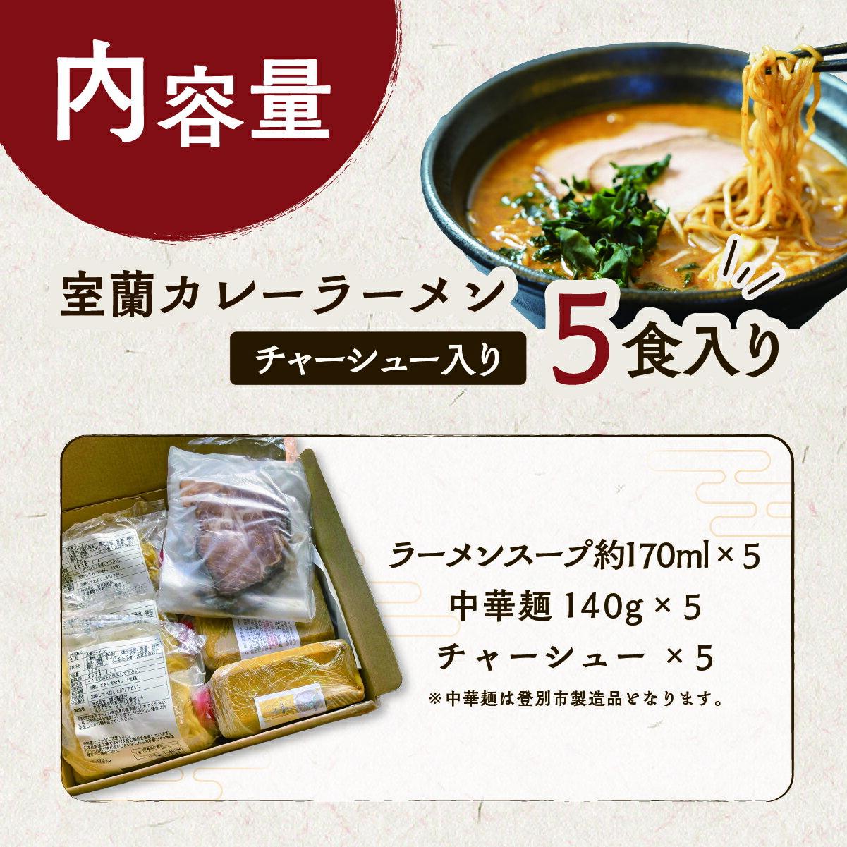- 【ふるさと納税】室蘭カレーラーメン5食入り(チャーシュー付) 【ふるさと納税 人気 おすすめ ランキング ラーメン カレー カレーラーメン チャーシュー らーめん 拉麺 室蘭カレーラーメン ソウルフード 北海道 室蘭市 送料無料】 MROA061