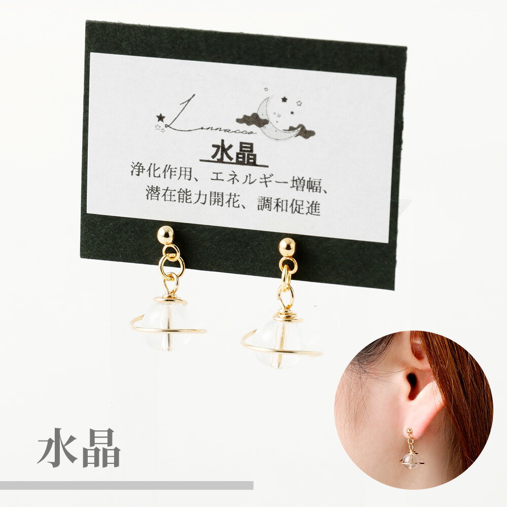 【ふるさと納税】【種類が選べる】土星ピアス 1個 天然石ビーズ パワーストーン 水晶 シトリン ダルメシアンジャスパー ロードクロサイト ターコイズ 両耳用 サージカルステンレス 幅2cm アクセサリー ファッション レディース 宇宙 女性 楽天スーパー SALE 9月開催
