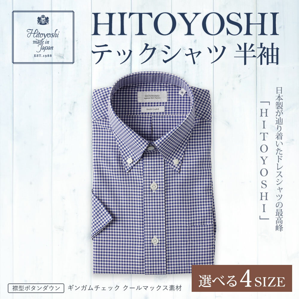 【ふるさと納税】HITOYOSHIテックシャツ半袖 ボタンダウン 1枚 紳士用 選べるサイズ M/L/LL/3L ギンガムチェック ポリエステル100% 日本製 半袖シャツ 無地 ドレスシャツ メンズ 男性 ファッション 熊本県 人吉市 送料無料