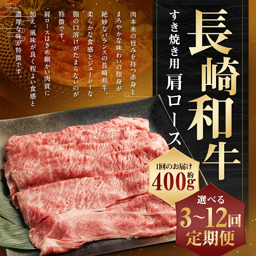 - 【ふるさと納税】定期便 長崎和牛 すき焼き用 肩ロース 約400g 選べる回数 ( 3回 / 6回 / 12回 ) | 和牛 長崎県産 お肉 牛肉 肉 国産 霜降り すきやき 冷凍 長崎県 長崎市 送料無料