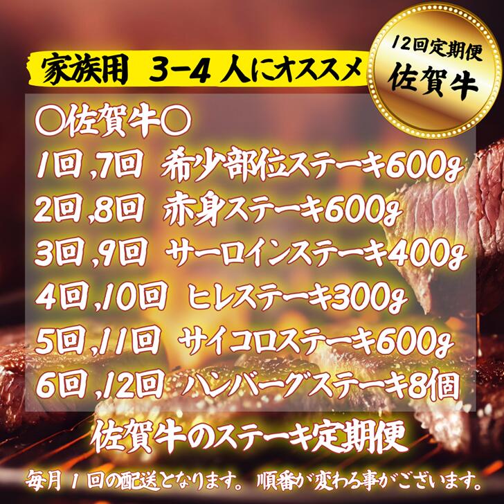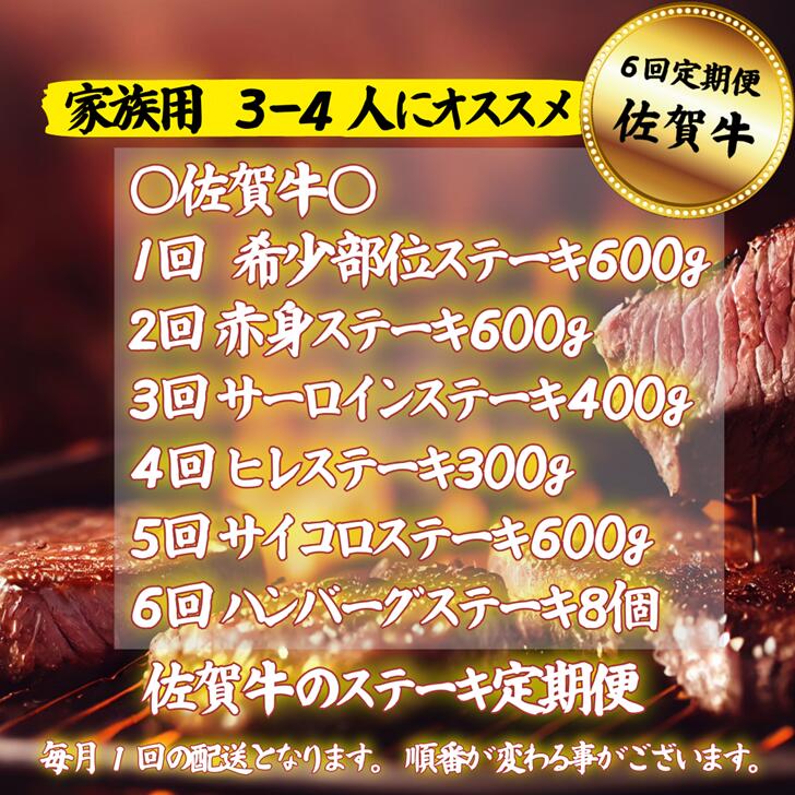 - 【ふるさと納税】【定期便 全6回~12回】【家族用】佐賀牛のステーキ定期便 サーロインステーキ 赤身ステーキ サイコロステーキ 希少部位ステーキ ヒレステーキ ハンバーグステーキ:C137-007