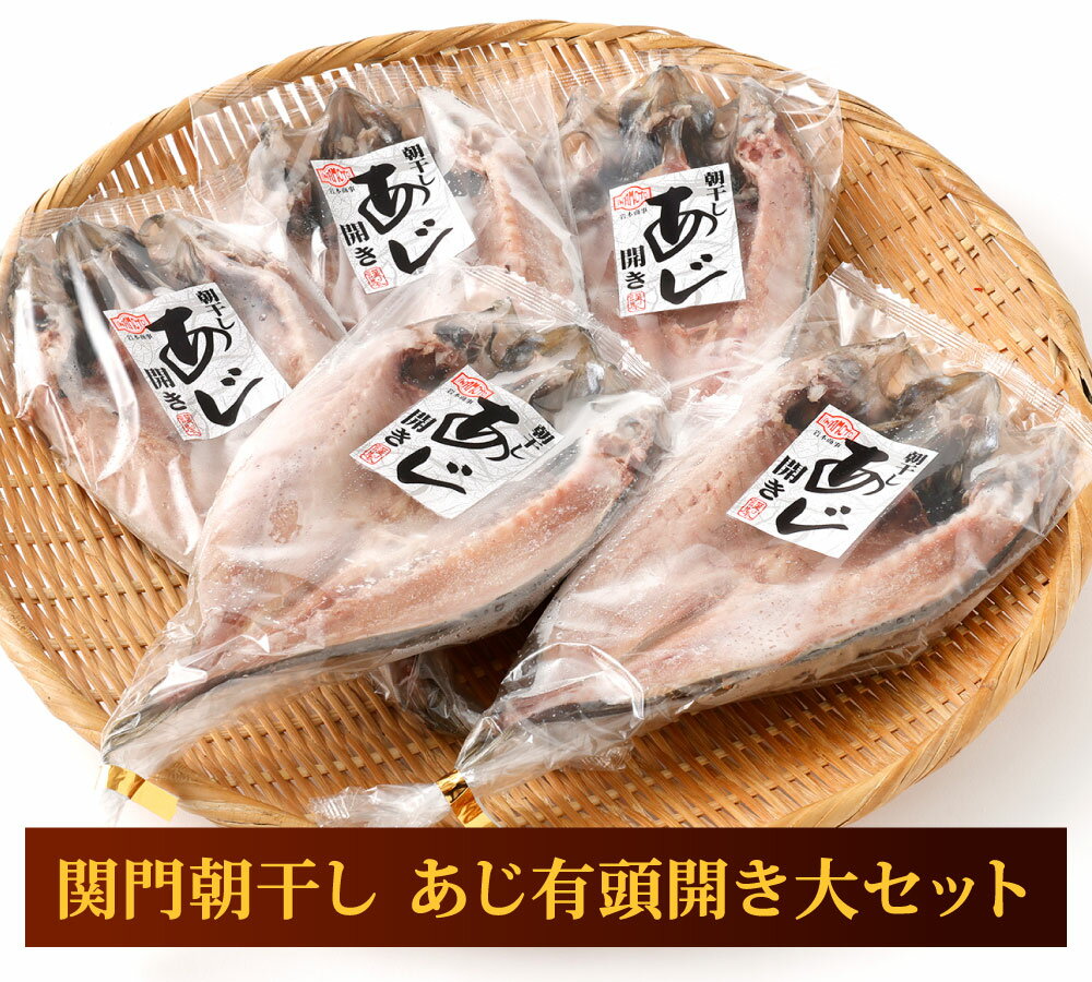 【ふるさと納税】関門朝干し あじ 有頭開き 大 5枚 セット 1枚約200g 合計1kg 干物 ひもの アジ 鯵 焼き魚 魚 真あじ 肉厚 和食 日本食 脂 アジの開き 冷凍 福岡県北九州市