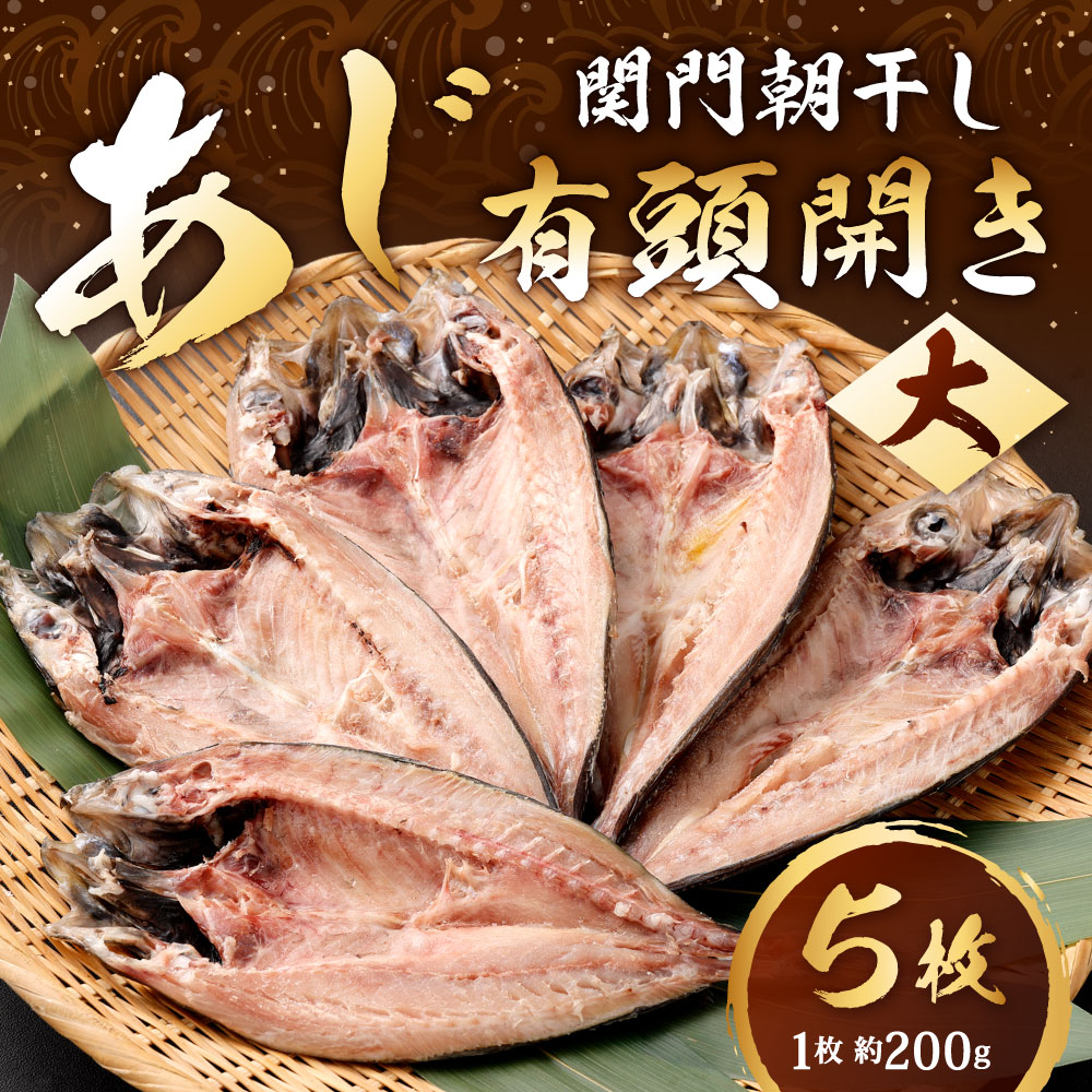 - 【ふるさと納税】関門朝干し あじ 有頭開き 大 5枚 セット 1枚約200g 合計1kg 干物 ひもの アジ 鯵 焼き魚 魚 真あじ 肉厚 和食 日本食 脂 アジの開き 冷凍 福岡県北九州市