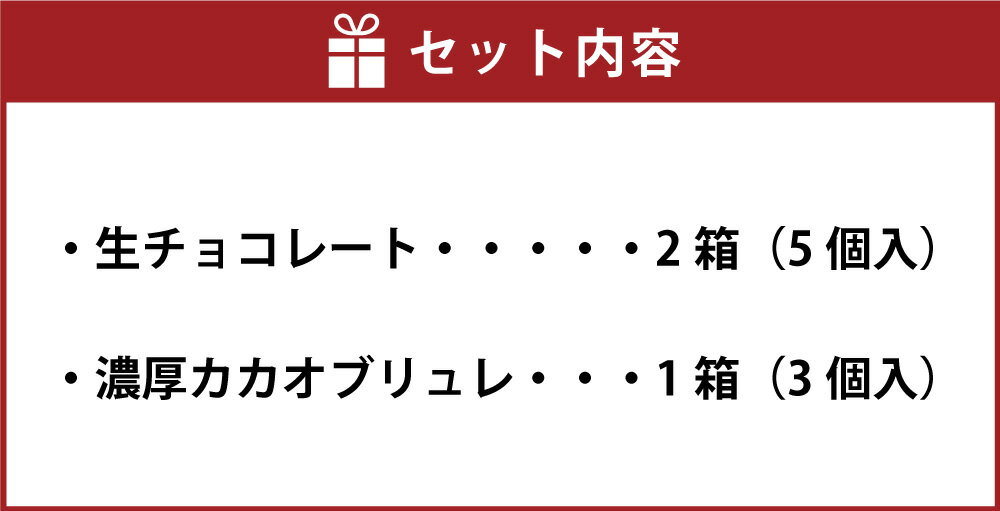 - 【ふるさと納税】にっぽんの宝物世界大会2023 日本と海外の融合部門 第2位獲得!【世界を変えるカカオ】生チョコレート&濃厚カカオブリュレ 生チョコレート2箱 濃厚カカオブリュレ 1箱 チョコ ブリュレ 生チョコ 洋菓子 お菓子 スイーツ 冷凍 高知 高知県 香美市 送料無料