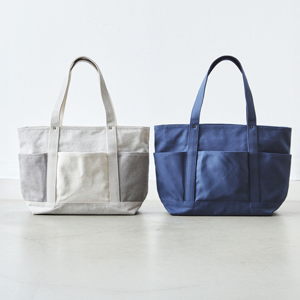 - 【ふるさと納税】<選べるカラー>6ポケット 帆布 トート かばん カバン 鞄 トートバッグ オフホワイト・ネイビー コットン100% 綿 8号帆布 倉敷帆布 はんぷ 平織り A4サイズ 収納 シンプル ファッション 日本製 岡山県 倉敷市 送料無料