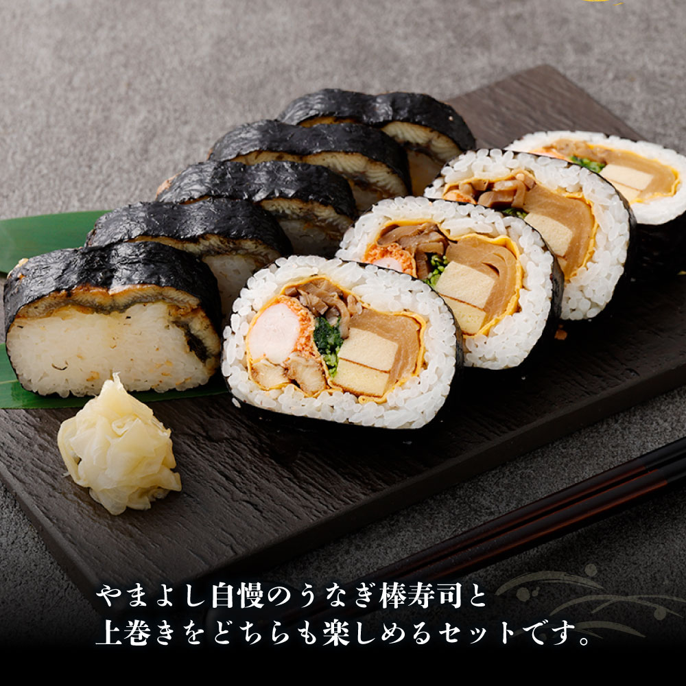 - 【ふるさと納税】巻き寿司セット(うなぎ棒寿司・上巻き) 計約800g 各約400g 計2本(各1本) 棒ずし 鰻寿司 巻き寿司 すし 寿司 魚介類 惣菜 おつまみ お酒のお供 うなぎ 鰻 ウナギ 酢飯 ごはん ご飯 焼き海苔 穴子 海老 かんぴょう 冷蔵 国産 大阪府 阪南市 送料無料