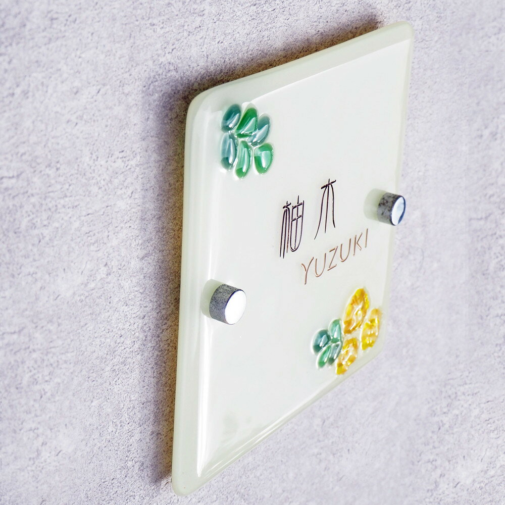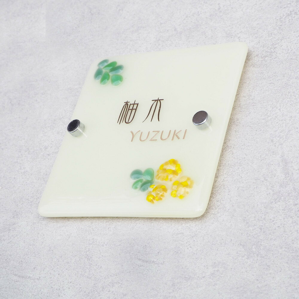 【ふるさと納税】ナチュラルガラス表札(ミモザ)