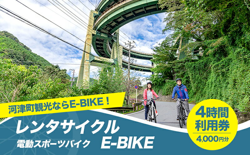- 【ふるさと納税】レンタサイクル E-BIKE 4時間利用券 4,000円分 利用券 体験チケット 観光 自転車 アシスト付き アクティビティ 移動手段 河津町 静岡県