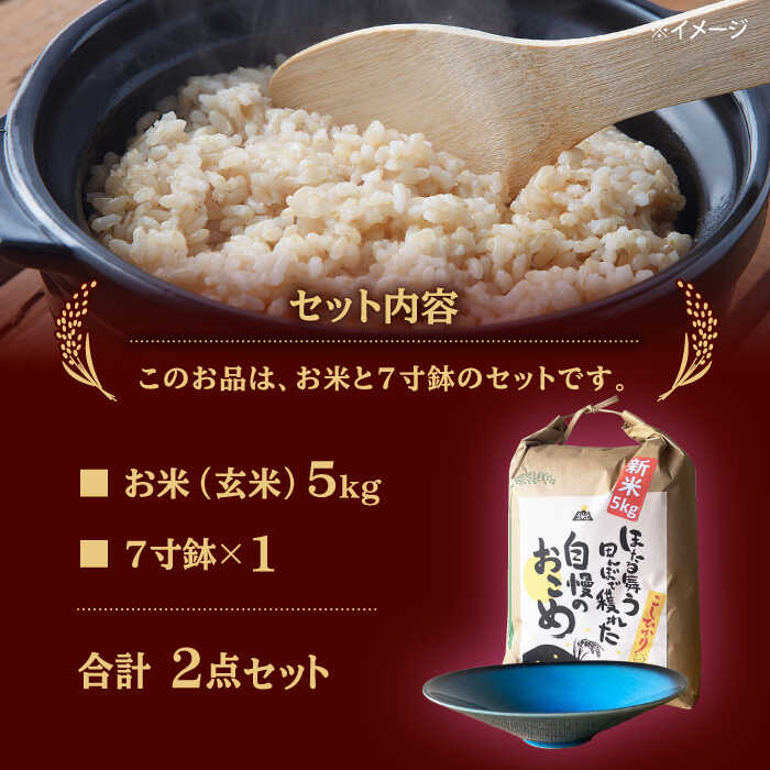 - 【ふるさと納税】【令和7年産】 玄米 コシヒカリ 特別栽培米 (5kg)+ 【美濃焼】 青輝貫入 7寸鉢 多治見市 / 山松加藤松治郎商店 [TEU052]