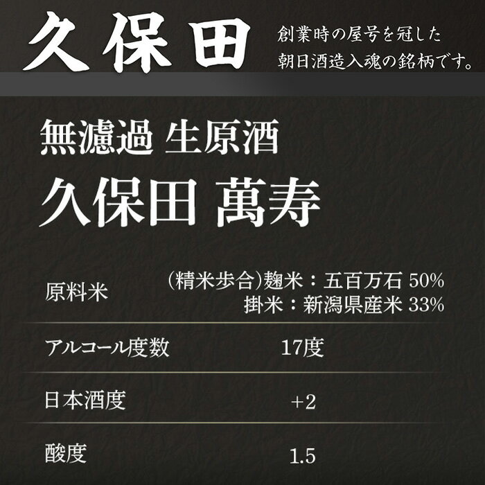 - 【ふるさと納税】日本酒 久保田 萬寿 無濾過生原酒 純米大吟醸酒 新潟 地酒 晩酌 お取り寄せ 淡麗 辛口【朝日酒造】