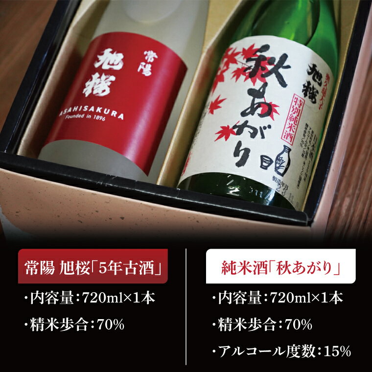 【ふるさと納税】【季節限定】【珂北酒造】旭桜 古酒セット 720ml×2本セット(常陽 旭桜「5年古酒」・純米酒「秋あがり」)|お酒 日本酒 清酒 地酒 古酒 貯蔵 期間限定 数量限定 茨城県 大子町 (AS010)
