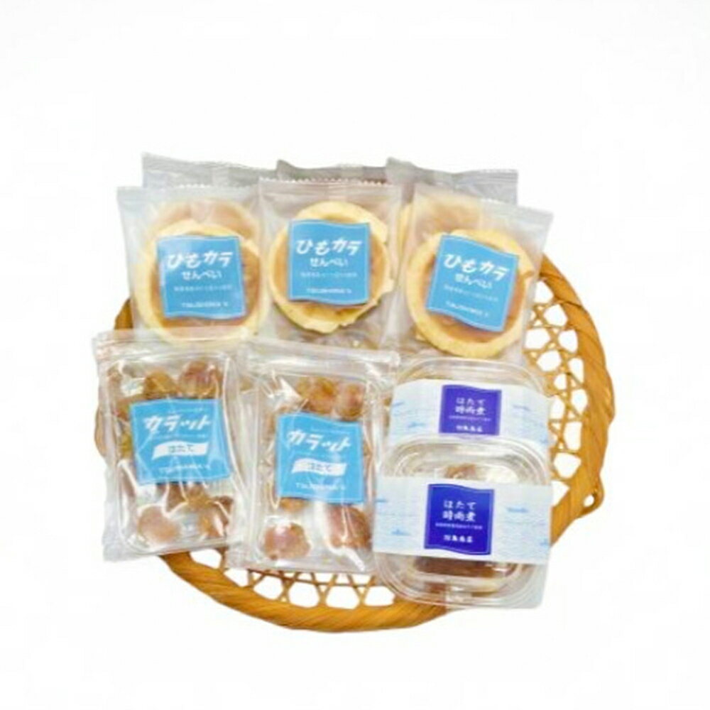 - 【ふるさと納税】対島商店 ほたて日和(カラット40g×2・ほたて時雨煮40g×2・ひもカラせんべい10g×6) 【02408-0165】 青森県 東北町 小川原湖 対島商店