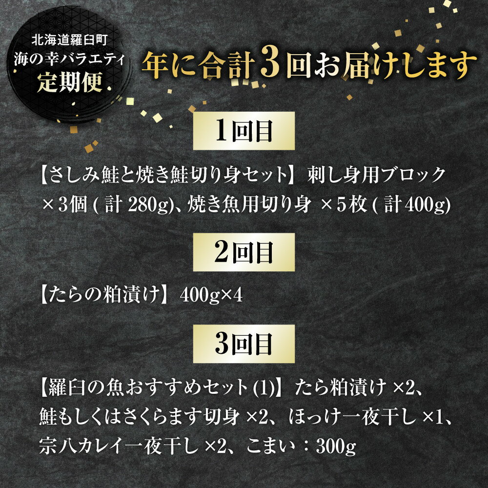 - 【ふるさと納税】年3回!北海道羅臼町 海の幸バラエティ定期便 鮭(シャケ) 鱈(たら)お魚詰め合わせ 生産者 支援 応援