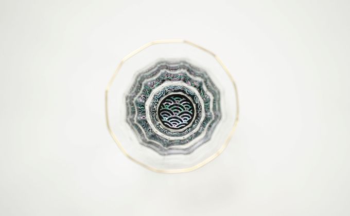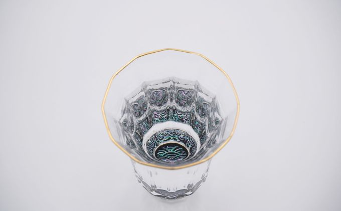 - 【ふるさと納税】金杯(万華鏡)青海波(貝入)黒 酒器 工芸品 ガラス 高岡漆器 あわび貝 漆 螺鈿ガラス上質感 十二角 金付杯 神秘的 輝き きれい おしゃれ