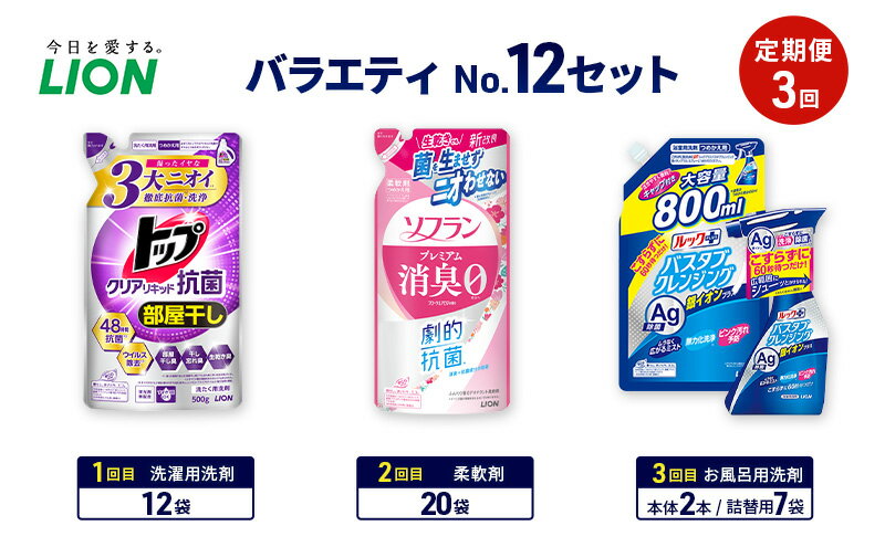 - 【ふるさと納税】≪期間限定 レビューCP≫バラエティNo.12 セット 定期便3回 ライオン トップクリア リキッド抗菌 ソフラン プレミアム消臭 詰替 ルックプラス バスタブクレンジング ギフト 洗濯洗剤 柔軟剤 お風呂用洗剤