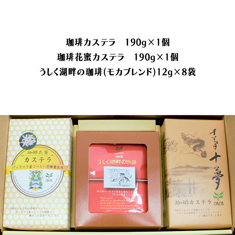 - 【ふるさと納税】≪ 熨斗付 ≫ 珈琲カステラ & 珈琲花蜜カステラ の ドリップパック セット 3種 珈琲 バリスタ ブレンド モカ 自家焙煎 香り 挽きたて おやつ デザート 手土産 贈答 お祝い 記念日 ギフト プチギフト 茨城 トムトム