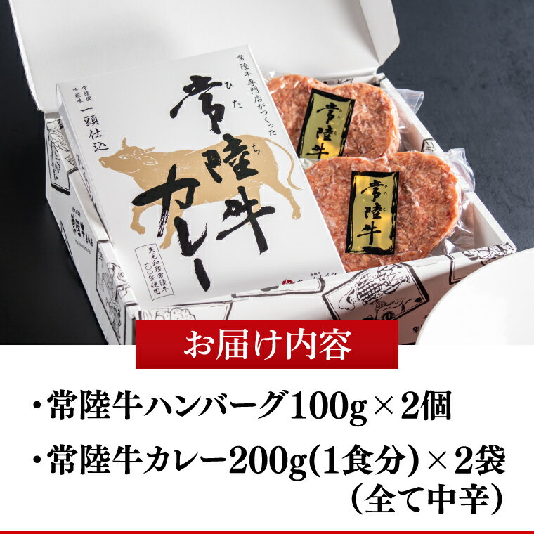 - 【ふるさと納税】 常陸牛ハートハンバーグ100g×2個 常陸牛カレー2個 詰め合わせセット レトルトカレー 化粧箱 12000円 敬老の日 【肉のイイジマ】茨城県 水戸市(DU-130)