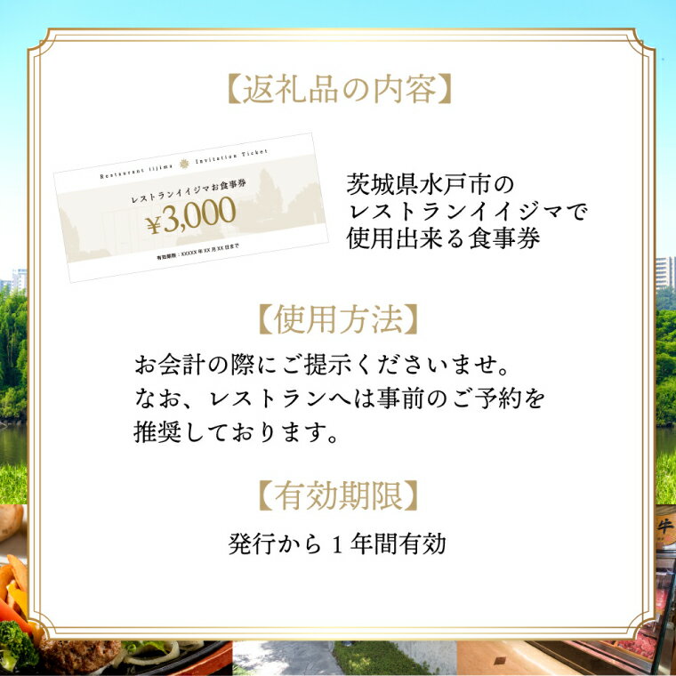 - 【ふるさと納税】【選べる金額】 レストラン 食事券 水戸 茨城県 創業45年 レストランイイジマ 常陸牛 ディナー ランチ クーポン 和牛 優待券 お食事券 体験 洋食 夫婦 返礼品 敬老の日 ギフト 故郷納税 お祝い(DU-121)