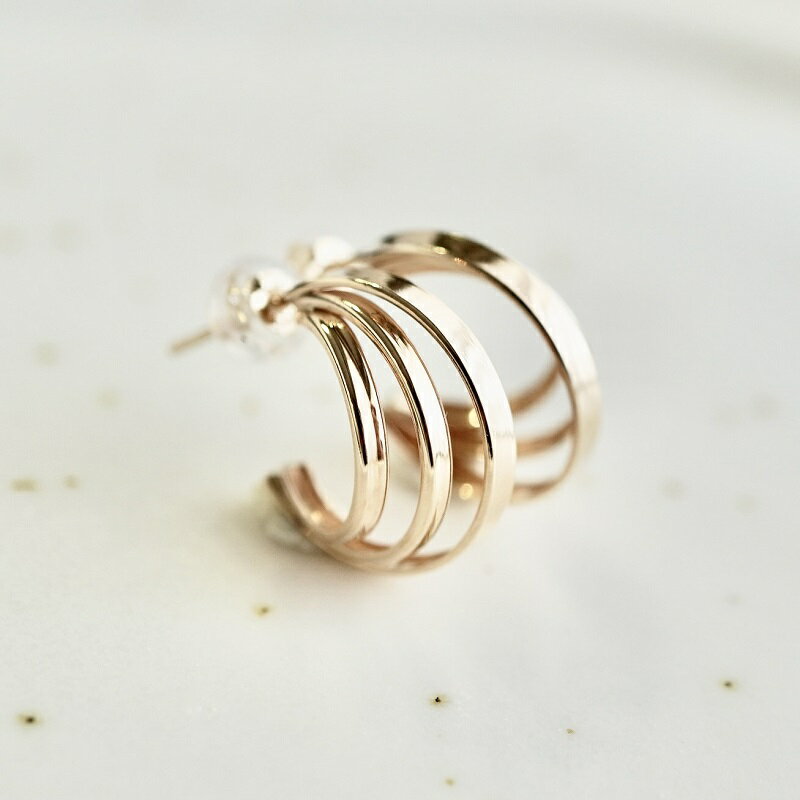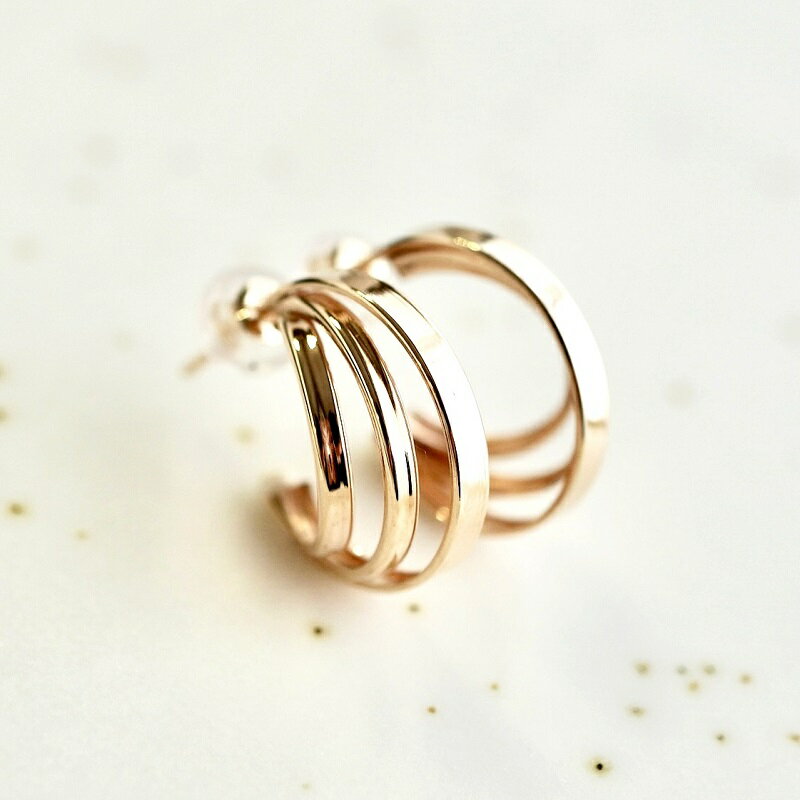 - 【ふるさと納税】< 甲府ジュエリー > ピアス ジュエリー レディース アクセサリー K10 イエローゴールド 地金 3連 シンプル デイリー ギフト プレゼント ジュエリーケース付 保証書付 k247-043