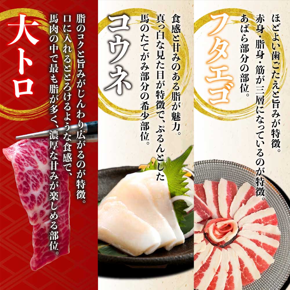 - 【ふるさと納税】 馬刺し セット 大トロ フタエゴ コウネ 600g 詰合せ 馬肉 送料無料 まるしげ家