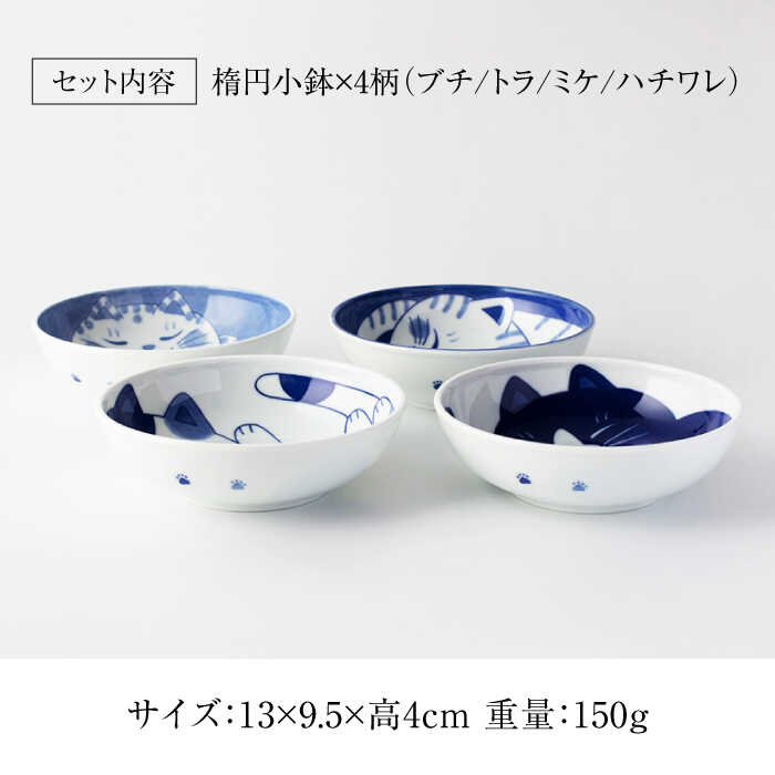- 【ふるさと納税】【美濃焼】ねこちぐら 楕円小鉢 4点セット【大東亜窯業】 食器 豆皿 ねこ [MAG044]