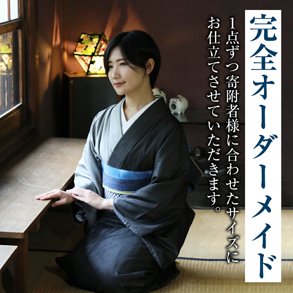 【ふるさと納税】<選べる>和デニム着物 オーダーメイド 着物+帯セット シルクデニム着物 ツートーンカラー(墨色/燻色)デニム半巾帯 3色《帯の裏地:茜色・海色・藤色》女性用 エレガント 倉敷市 児島特産 レディース
