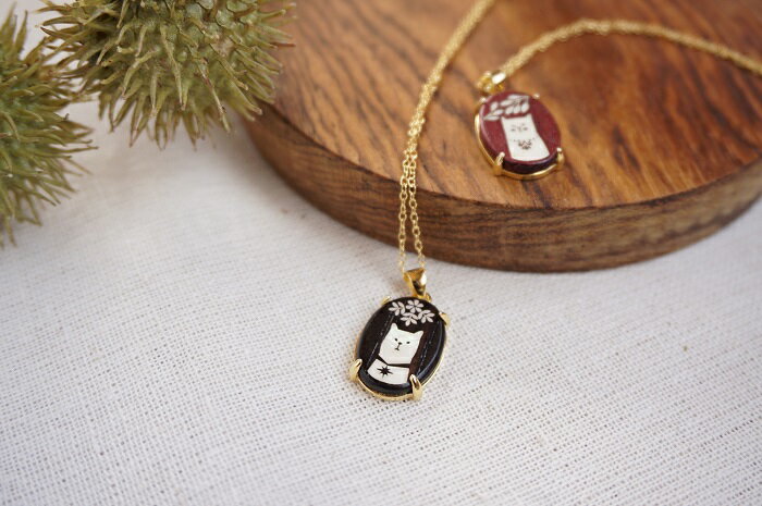 - 【ふるさと納税】貝象嵌 ちょっとおすましな犬と猫のインレイネックレス ペンダント 無垢材 黒檀 パープルハート 贈り物 プレゼント 岩手県 北上市 夢工房 D0540 かわいい 犬 猫 ネックレス