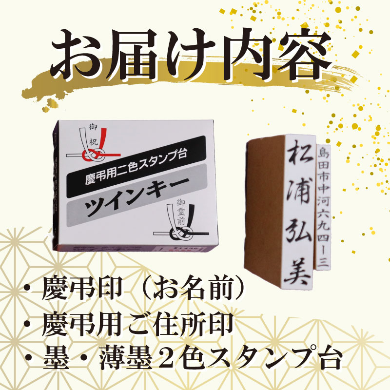 【ふるさと納税】 慶弔印 セット 名前 住所 印 墨 薄墨 2色 スタンプ台 スタンプ 慶弔 お祝い 表書き ゴム印 はんこ 印鑑 判子 慶事 弔事 のし 祝儀袋 弔電 葬儀 冠婚葬祭 挨拶状 贈答品 便利グッズ 文房具 事務用品 ハンコ屋 牧之原市 静岡県