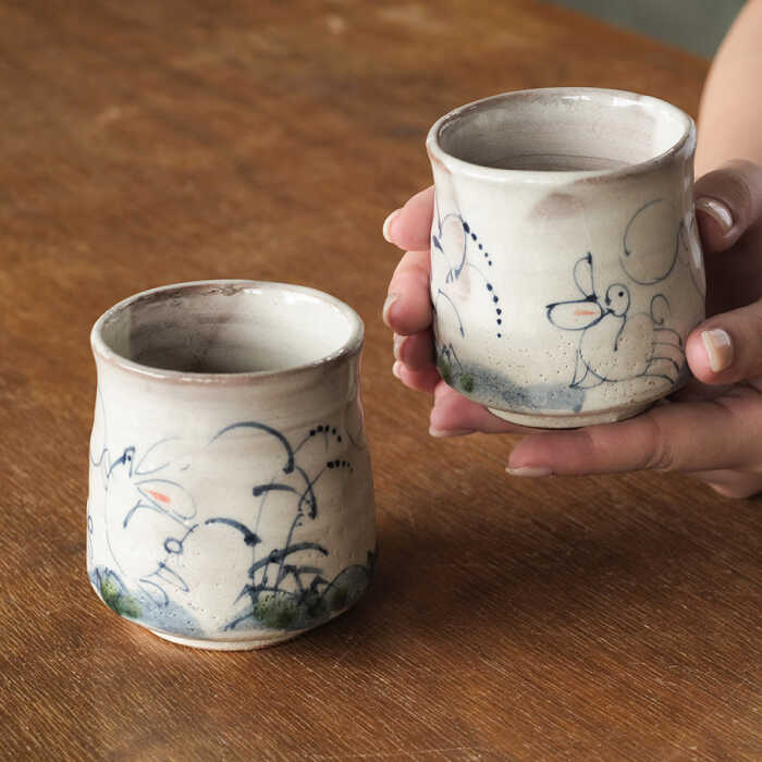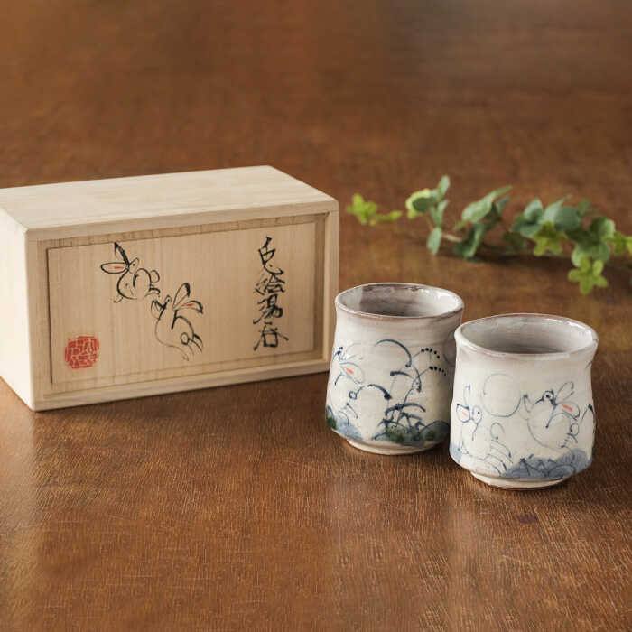 - 【ふるさと納税】【美濃焼】兎絵 組湯呑 [木箱入]【小栗正男】食器 湯呑み ペア [MBH004]