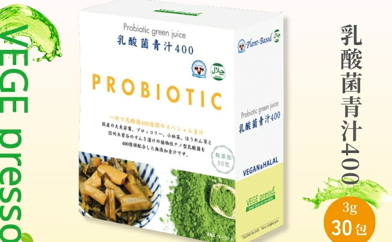 【ふるさと納税】【無添加青汁】乳酸菌青汁400(3g×30包) 無添加青汁 乳酸菌400億 デキストリンフリー青汁 デキストリン無添加青汁 粉末青汁 ヘルシー青汁 健康青汁 野菜青汁 植物性青汁 駒ヶ根市