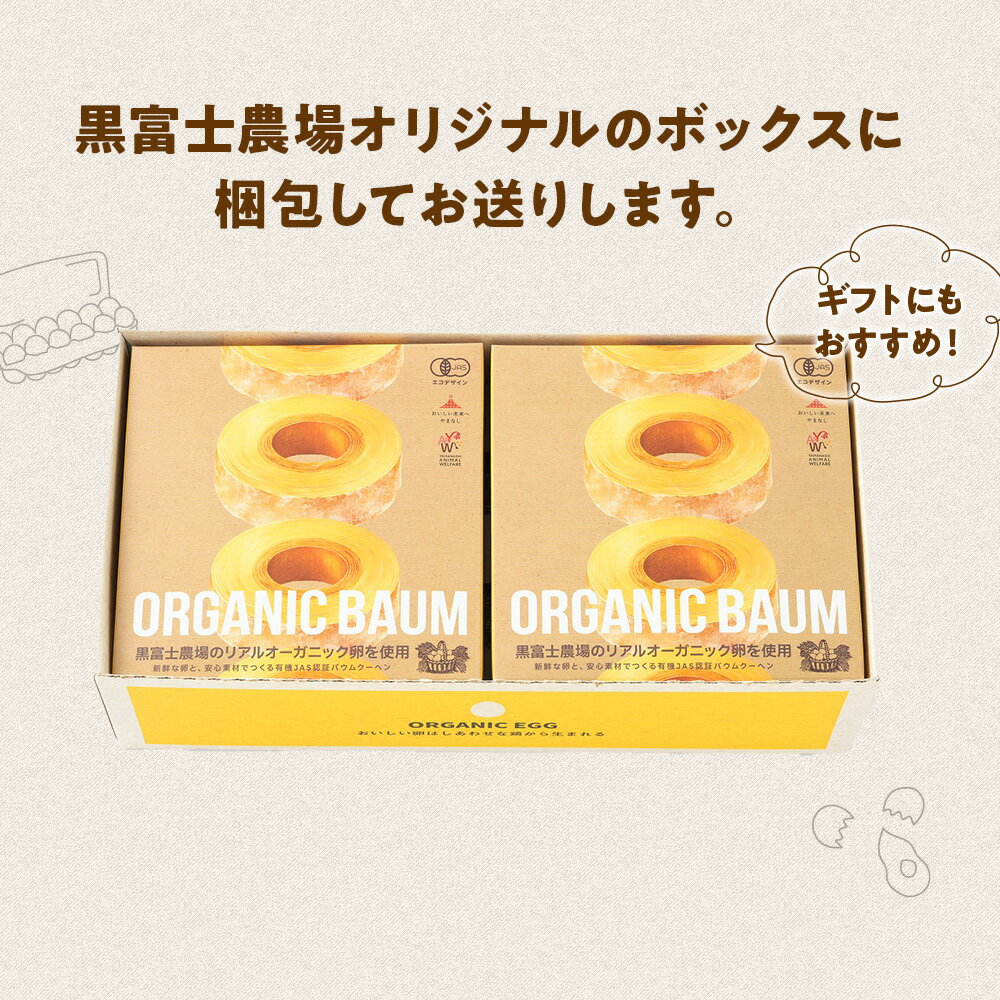 - 【ふるさと納税】日本初 有機認証 バウムクーヘン 黒富士農場の有機ばうむ 3個セット 無添加 有機JAS オーガニック 国産 贈答 ギフト お取り寄せ スイーツ 焼き菓子 お菓子 卵 たまご タマゴ 玉子 鶏卵 放牧卵 平飼い 山梨県 甲斐市 人気 おすすめ B-69