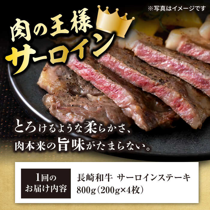 - 【ふるさと納税】【3回定期便】 長崎和牛 サーロインステーキ 800g(200g×4枚)計2.4kg / 牛肉 和牛 黒毛和牛 ロース 霜降 / 大村市 かとりストアー[ACAN081]