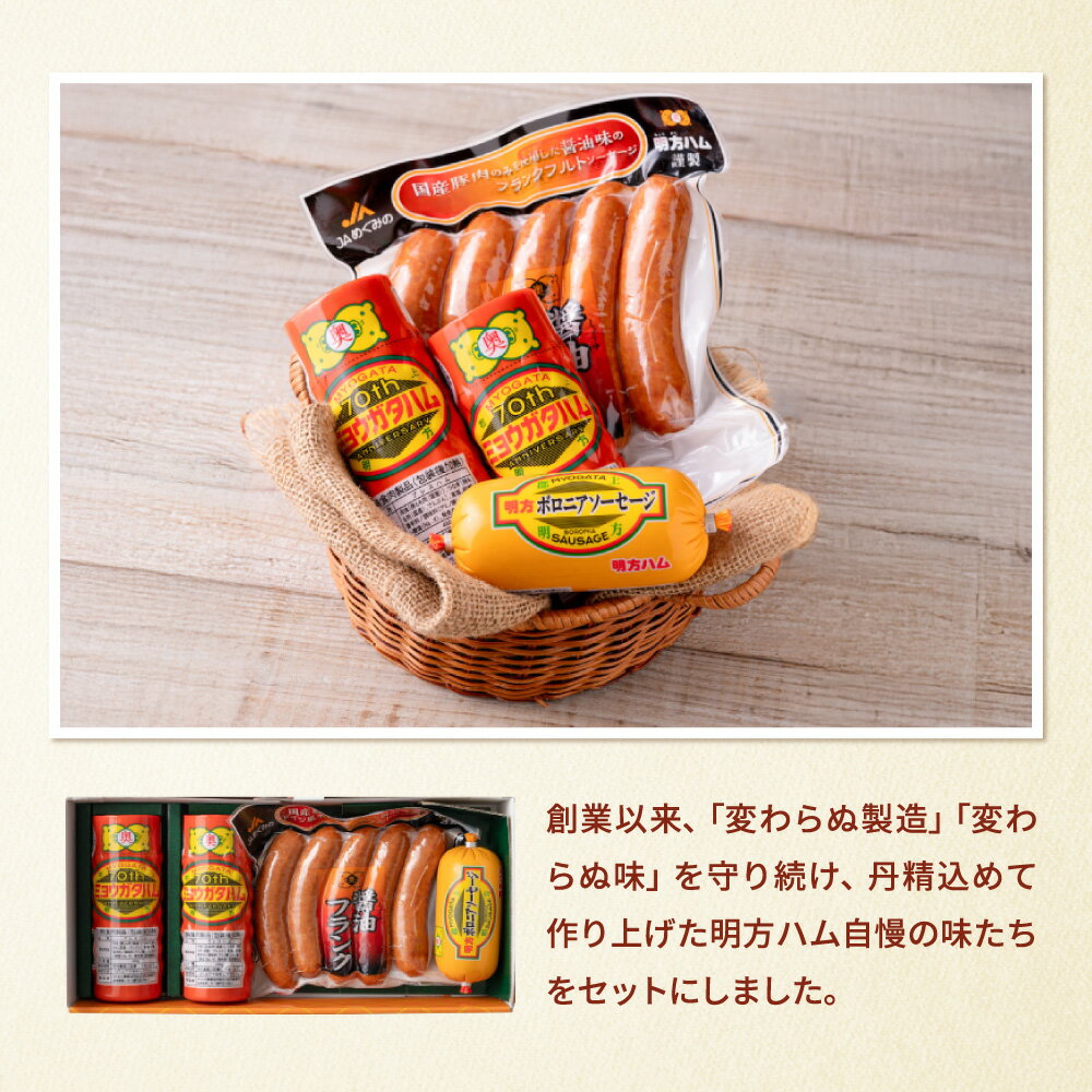 - 【ふるさと納税】 ハム ソーセージ 詰め合わせ 明方ハム Bセット 1kg 計1320g ボロニアソーセージ 醤油フランク フランクフルトソーセージ ウインナー おつまみ 肉 国産豚肉 お取り寄せ