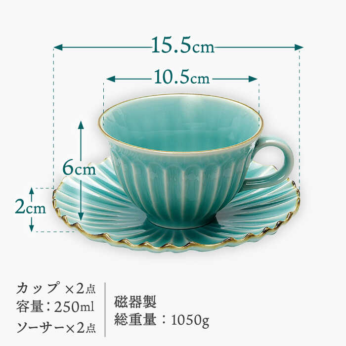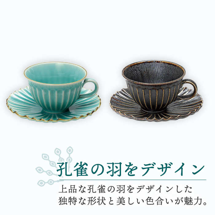 - 【ふるさと納税】【美濃焼】孔雀 カップ&ソーサー ペアセット【株式会社二幸】 食器 ティーセット C/S≪土岐市≫[MCZ035]