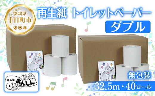 - 【ふるさと納税】トイレットペーパー ダブル 32.5m 40ロール 無包装 香りなし 日本製 日用品 備蓄 再生紙 リサイクル エコ 業務用 ストック NPO法人支援センターあんしん 新潟県 十日町市 消耗品 生活必需品