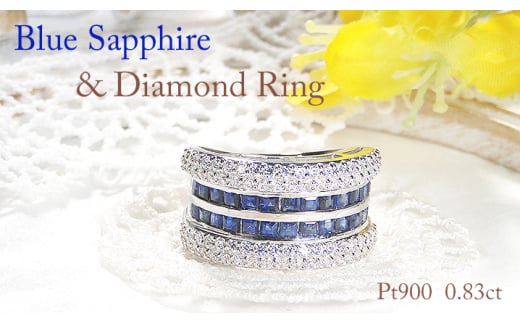 指輪 プラチナ PT900 ブルーサファイア スクエア パヴェ ダイヤモンド 0.83ct レディース リング ゴージャス 誕生石 レール 幅広 ジュエリー【f268-pt-bs】※11.5号 ALPAZ141-11_5