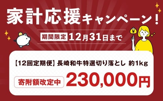 - 【期間限定!~12月31日まで寄附額改定】全12回定期便 A4~A5ランク 長崎和牛 特選 切り落とし 約1kg (200g×5パック) お肉 牛肉 肉 牛 和牛 国産牛 国産