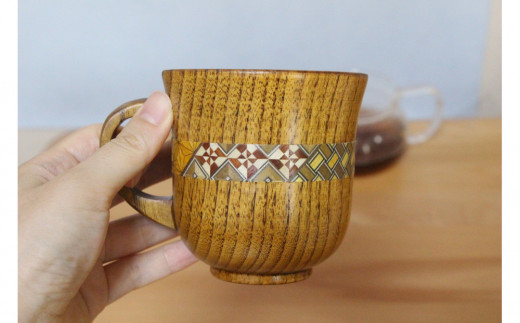 【箱根寄木細工 マグカップ2つと寄木盆のセット】伝統工芸品で素敵なひと時を
