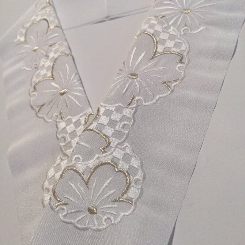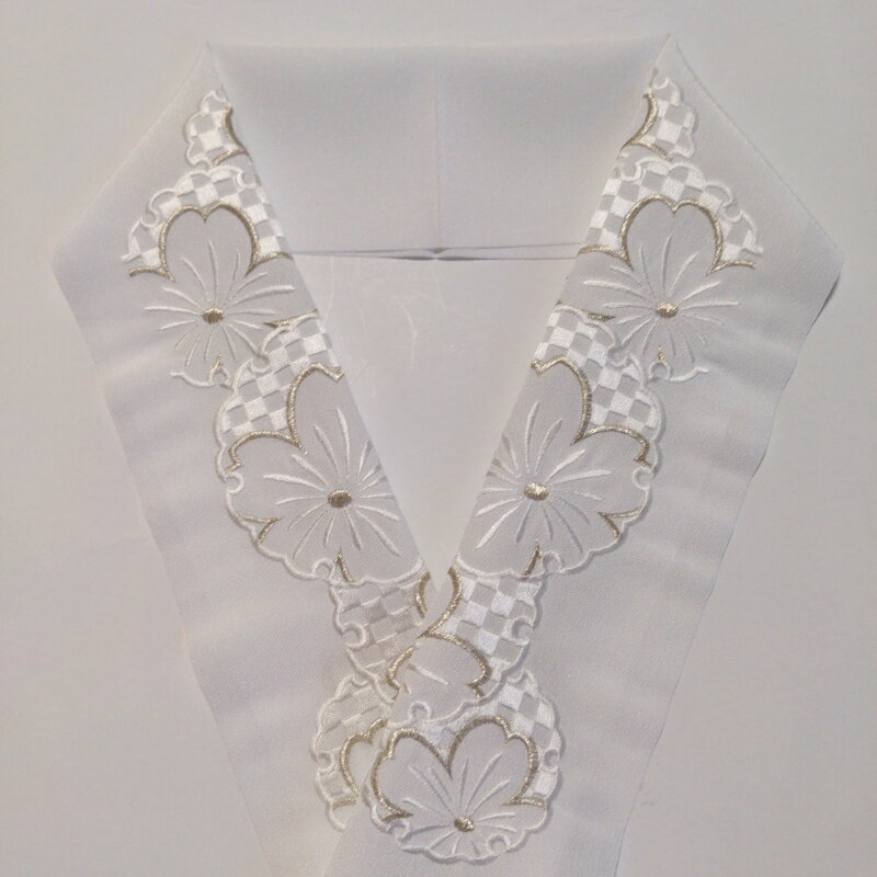 - 【ふるさと納税】半衿 桜と市松 白地に白とシルバー 刺繍 半襟 白 シルバー 桜 市松 柄 袷 お単衣 着物 おきもの 刺繍 ポリエステル 洗濯可 振り袖 訪問着 篠原縫製 伊丹市 兵庫県