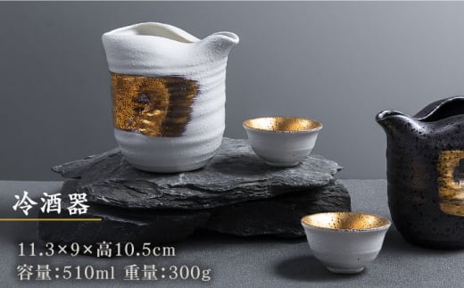 - 【美濃焼】白結晶片口金巻 冷酒器&平盃セット【やまい伊藤製陶所】 酒器 おちょこ お猪口 [MCW004]