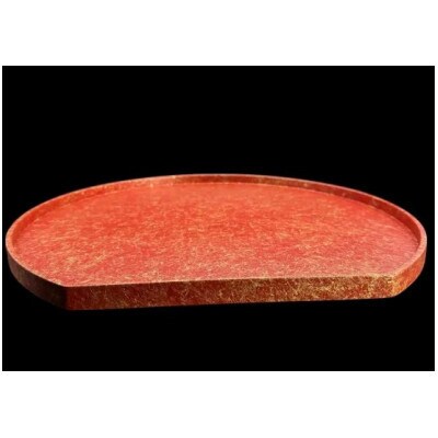 - 木製 半月トレイ 乱糸 (マット仕上げ) 本朱【1662226】