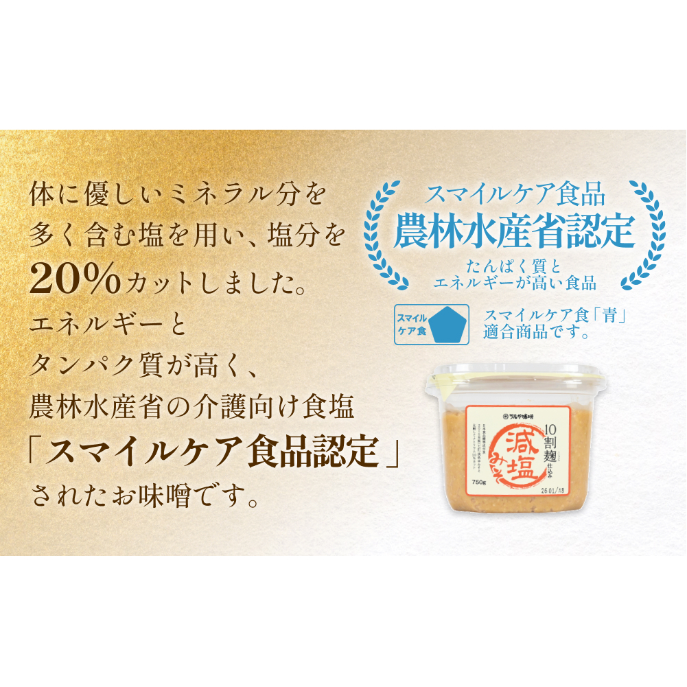 減塩味噌 10割麹仕込み 750g×4個 <スマイルケア食品認定> こうじ味噌 減塩 発酵 味噌汁 グルテンフリー 朝食 熟成 富山県 氷見市