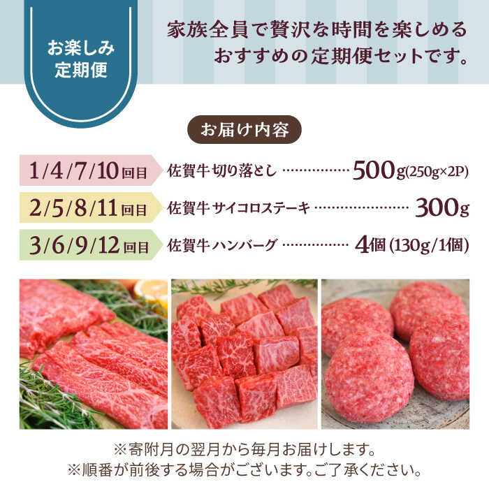 【牧場直送】【12回定期便】佐賀牛 少人数 家族向け お楽しみ 定期便【有限会社佐賀セントラル牧場】 [IAH217]