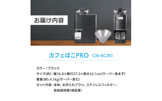 - シロカ コーン式全自動コーヒーメーカー カフェばこ PRO CM-6C261_ シロカ コーヒーメーカー 全自動 調理家電 家電 人気 おすすめ 送料無料 贈答 ギフト プレゼント 【1608878】