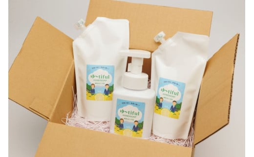 - ゆずエキスを使ったハンドソープ ゆーtiful ボトル1本+詰め替えパック2個【ゆず ハンドソープ エキス 詰め替え パック 無添加 保湿 天然成分 日本製 抗菌 柑橘系 肌に優しい ギフト 高品質 セット 柑橘 ギフト 福島 楢葉】