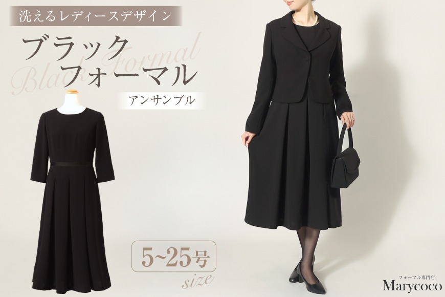 - AI367-a Marycoco 家庭で洗える テーラードカラー ブラック フォーマル アンサンブル ボックスプリーツワンピース [MK-0108B ジャケット ワンピース 長袖 レディース セットアップ きれいめ メアリーココ 長崎県 島原市 ]
